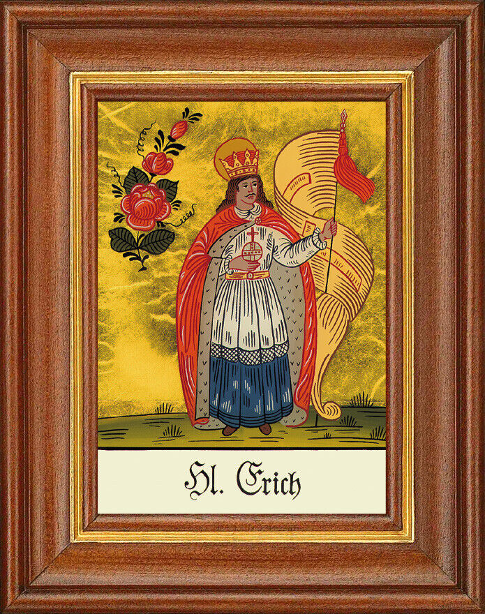 Hinterglasbild - Heiliger Erich - Patronatsbild Taufe Namenspatron 12,7x16