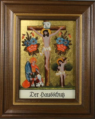 Hinterglasbild/Patronatsbild "Hausschutz Sebastian und Florian" mit braun