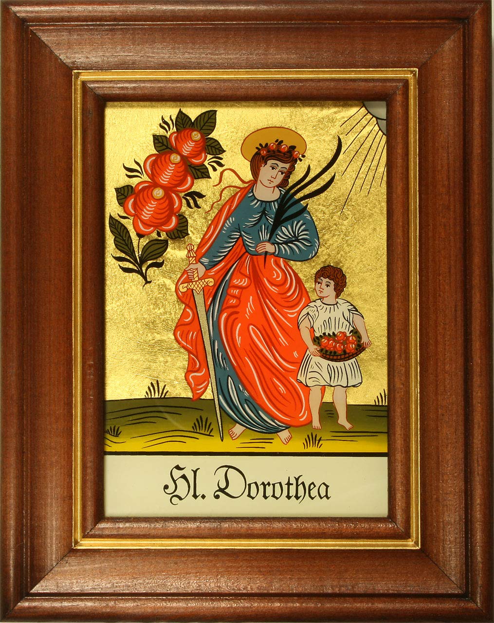 Hinterglaswerkstätten - Hinterglasbild/Patronatsbild Hl. Dorothea mit braun