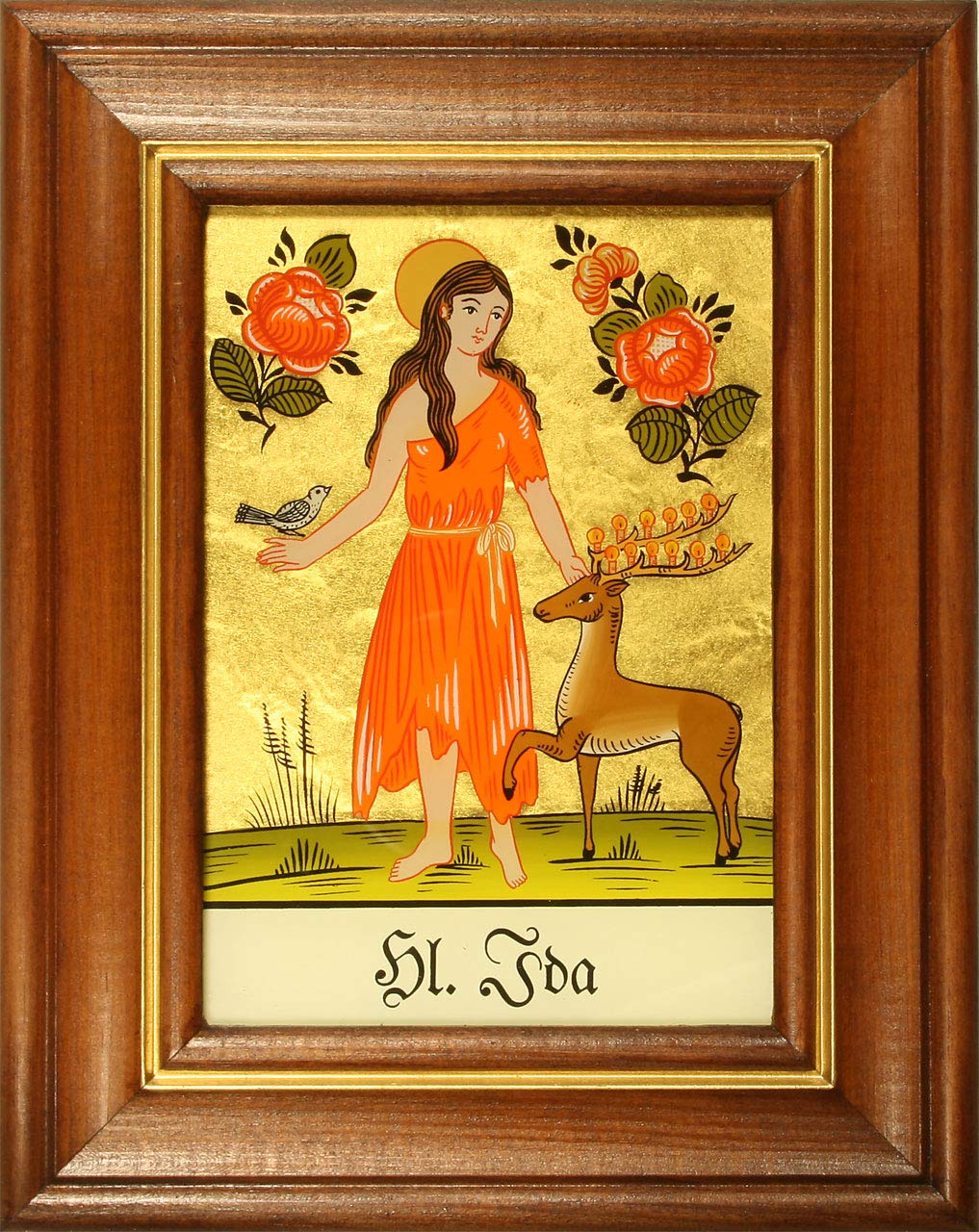Hinterglaswerkstätten - Hinterglasbild/Patronatsbild Hl. Ida mit braun