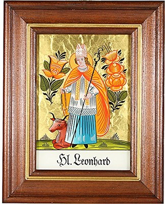 Hinterglaswerkstätten - Hinterglasbild/Patronatsbild Hl. Leonhard mit braun