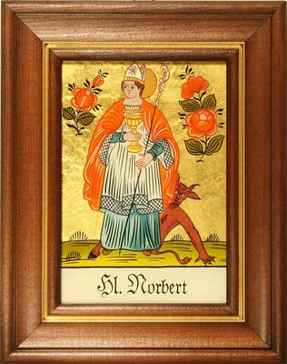 Hinterglaswerkstätten - Hinterglasbild/Patronatsbild Hl. Norbert mit braun