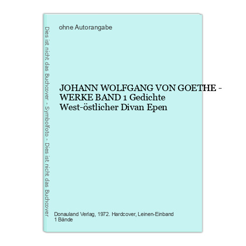 JOHANN WOLFGANG VON GOETHE - WERKE BAND 1 Gedichte West-östlicher Divan Epen