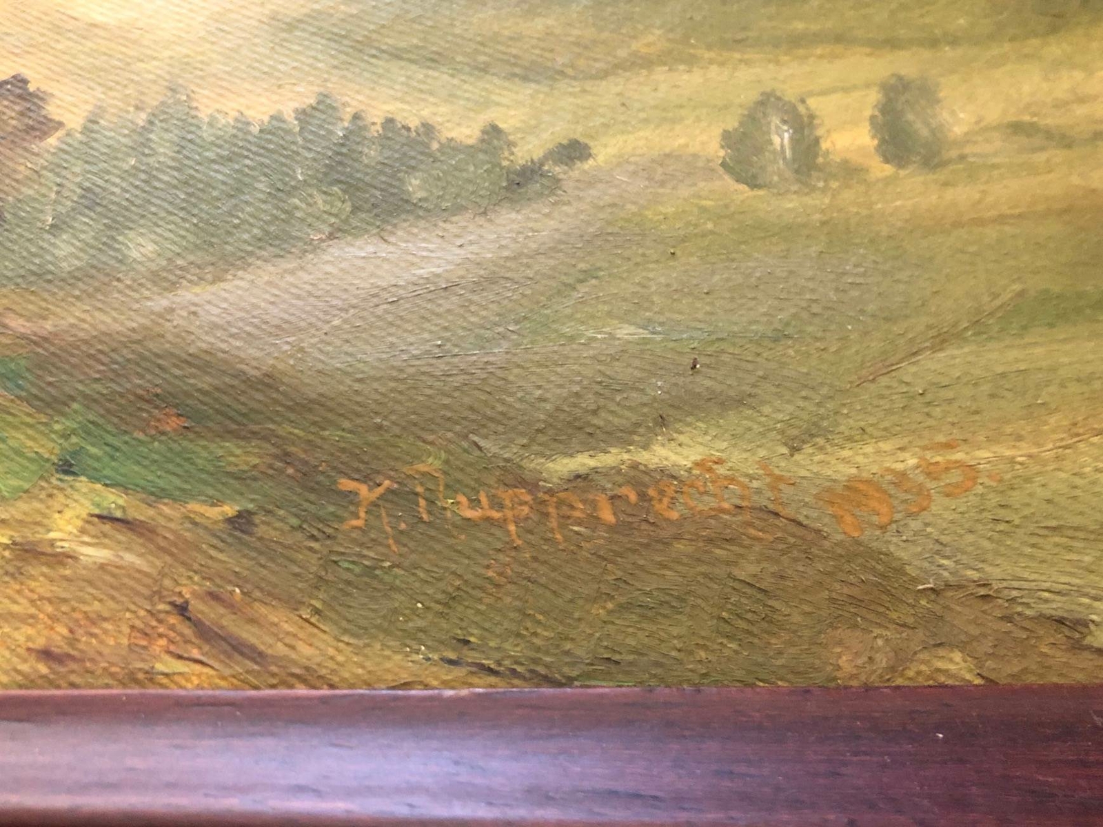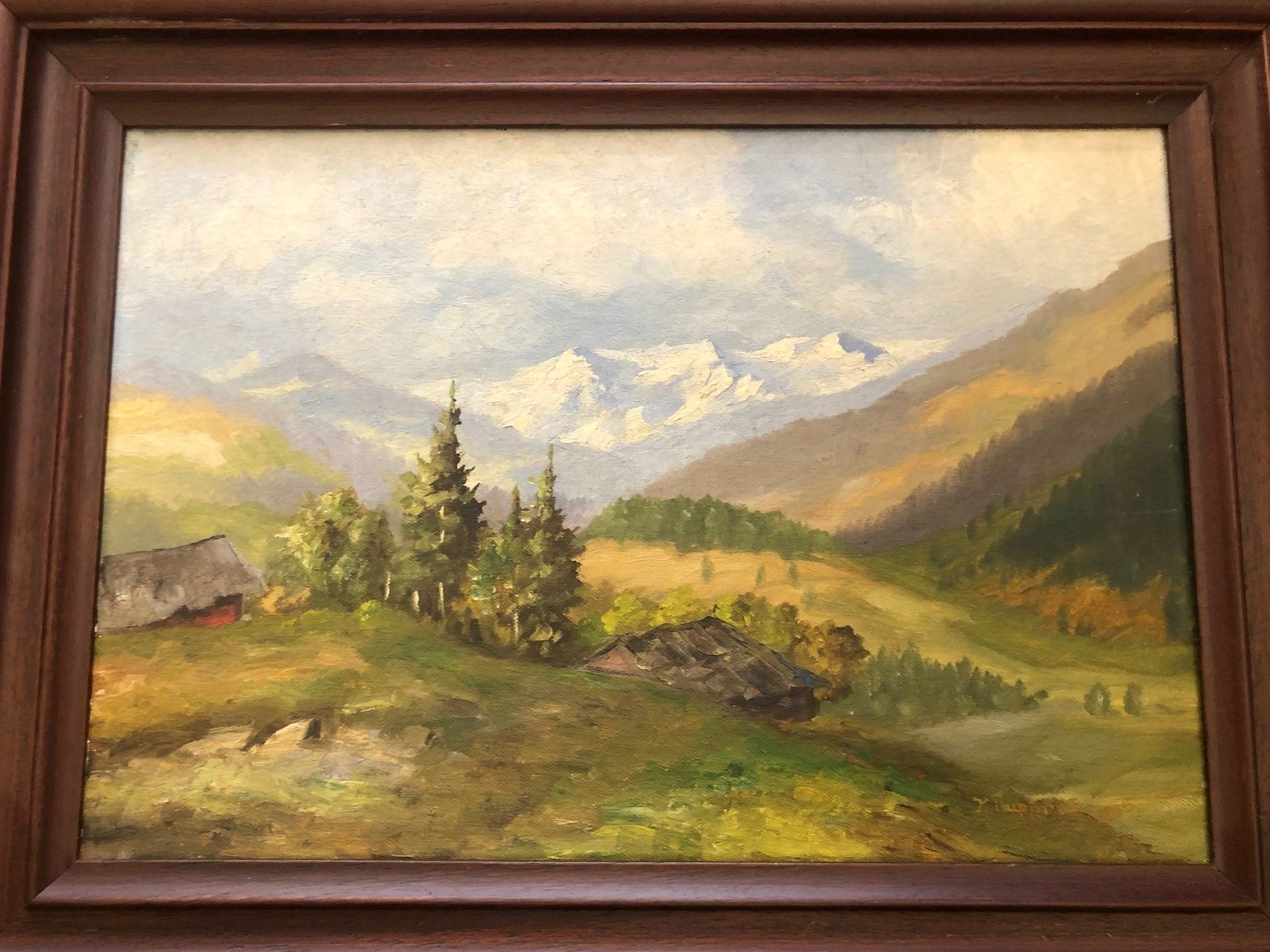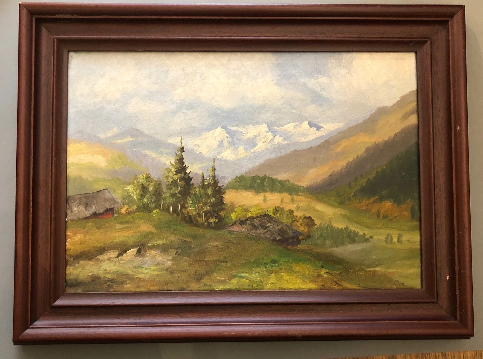 K. Rupprecht um 1935 Berglandschaft Alm Hütte auf Leinen gerahmt 48 x 36 42000