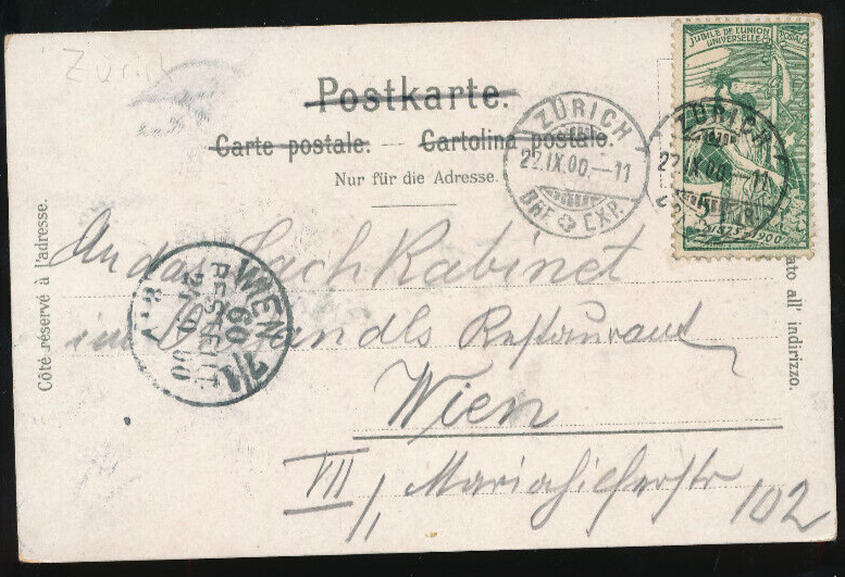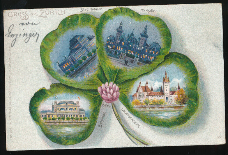 Kleeblatt-Karte gruss aus Zürich Schweitz mit Bahnhof und Landesmuseum (667)