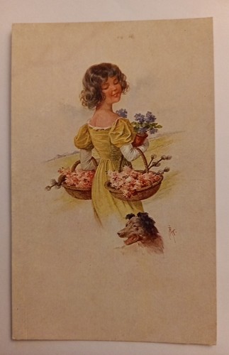 Korrespondenz Karte Frau mit Blumen und Hund 500059A gr D