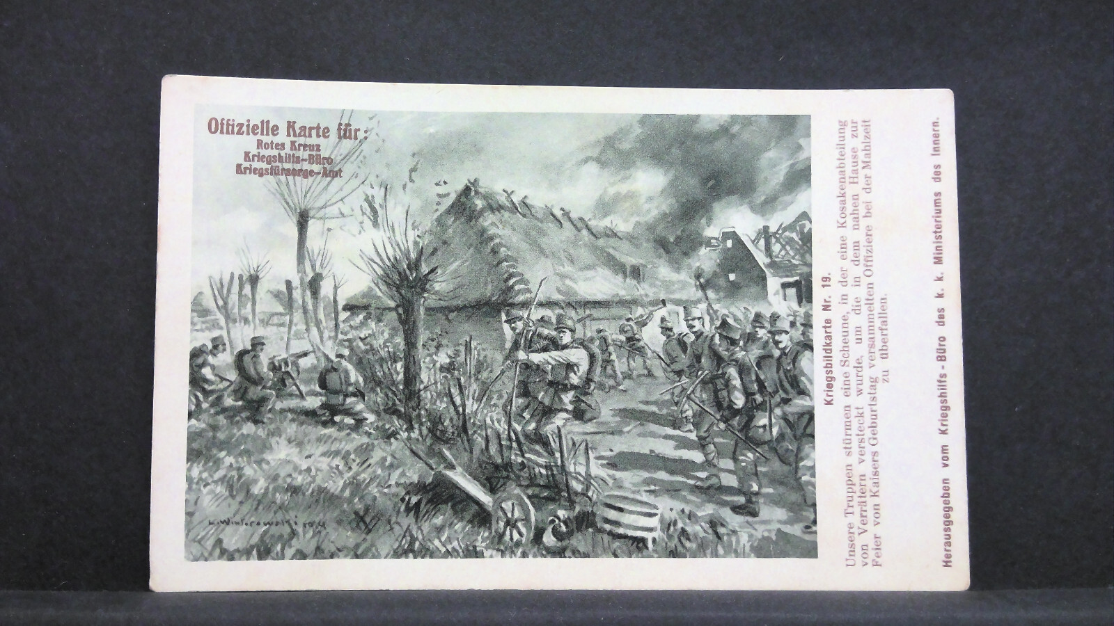 Kriegsbildkarte Nr. 19 Truppen stürmen Scheune Österreichische Armee JW 165454