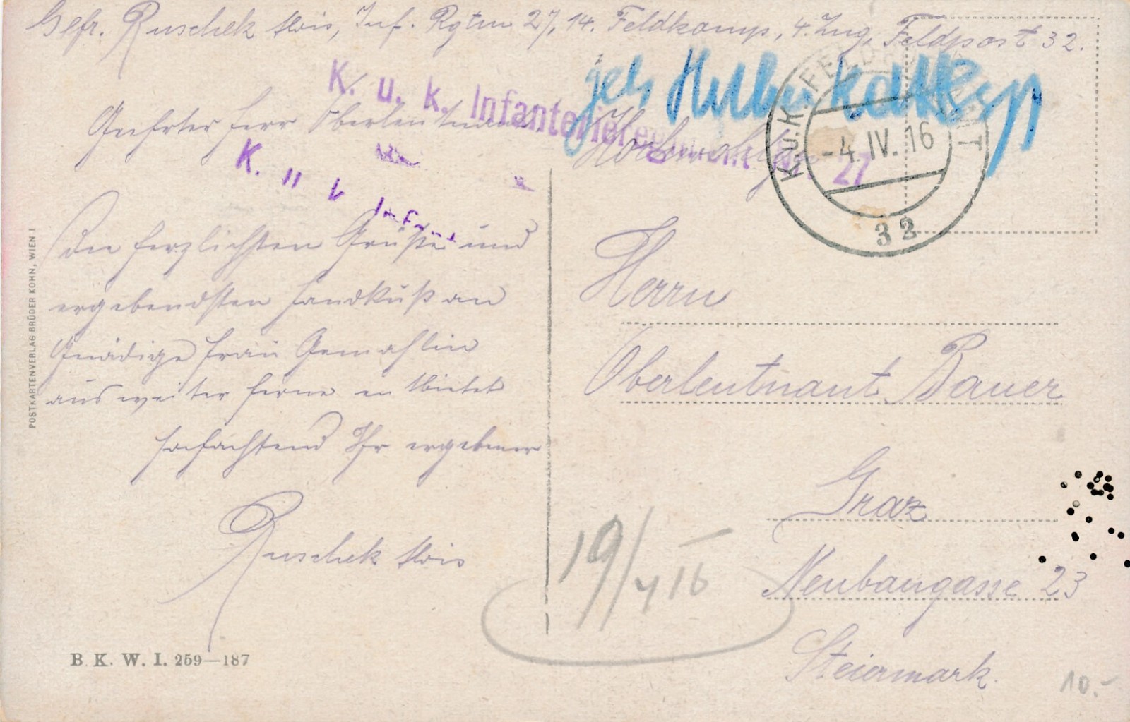 KuK Infanterieregiment Nr. 27 Ansichtskarte (16168)