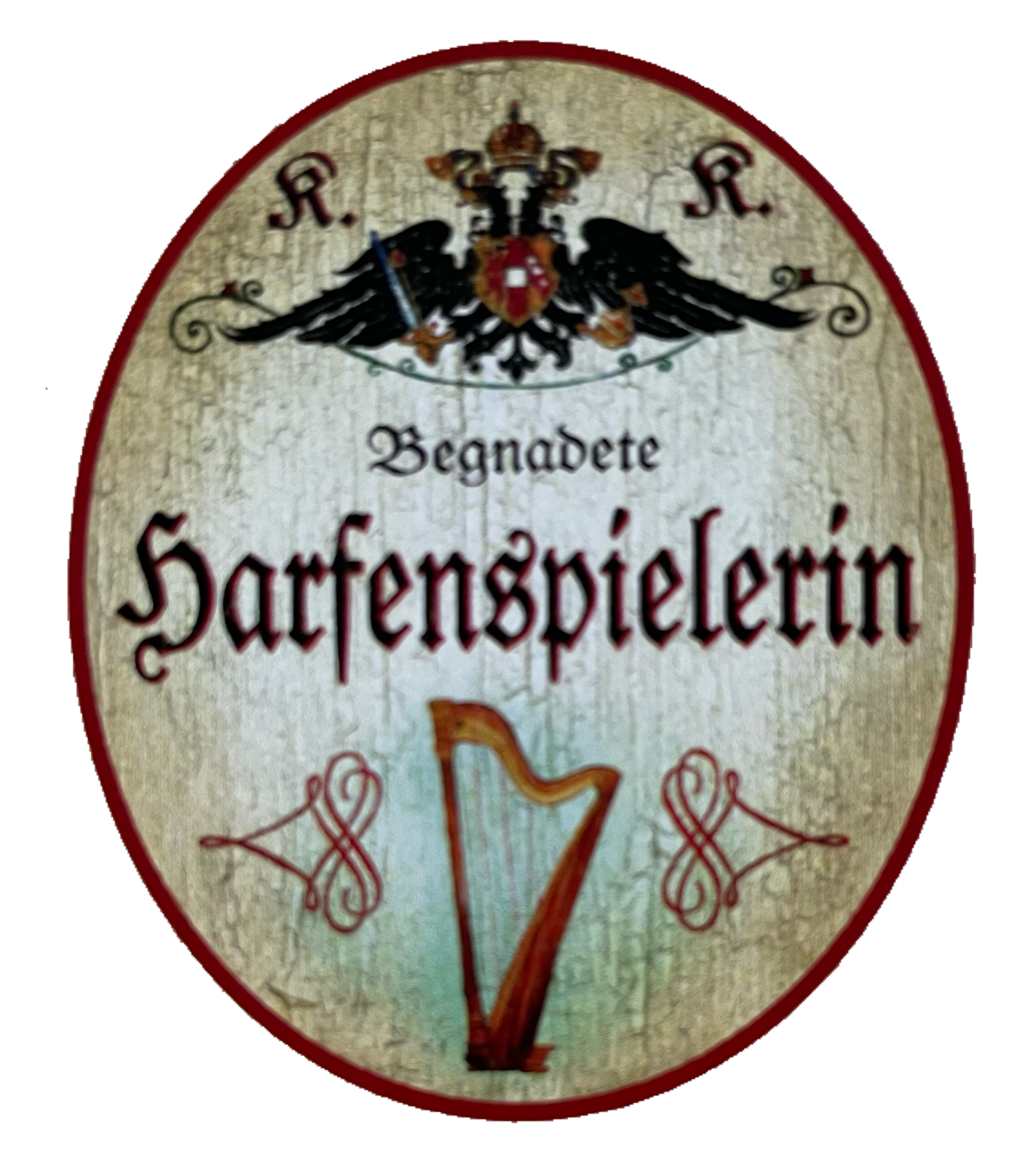 KuK Nostalgie Holzschild Begnadete Harfenspielerin Harfe Musikerin Schild