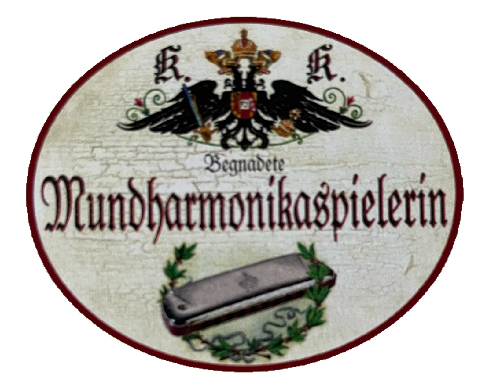 KuK Nostalgie Holzschild Begnadete Mundharmonika Spielerin Musiker Schild