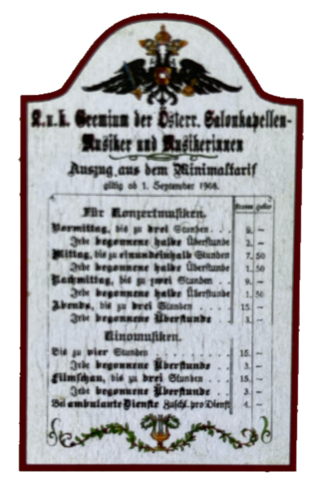 Unter dem stolzen K&K Doppeladler der Monarchie beeindruckt ein Titel wie Hochlöbliche/r, Landesbefugte/r oder kaiserlich privilegierte/r kombiniert mit Berufen, Hobbys, Sport oder anderen Passionen, und einem dazu passendem Symbol oder Bildmotiv. Auf Wunsch mit Namen, Jahreszahlen, etc. personalisiert, sind diese Schilder ideale Geschenke für die zahlreiche Anlässe: die bestandene Gesellen- oder Meisterprüfung, Diplom, Berufsjubiläen oder zum Eintritt in den wohlverdienten Ruhestand.