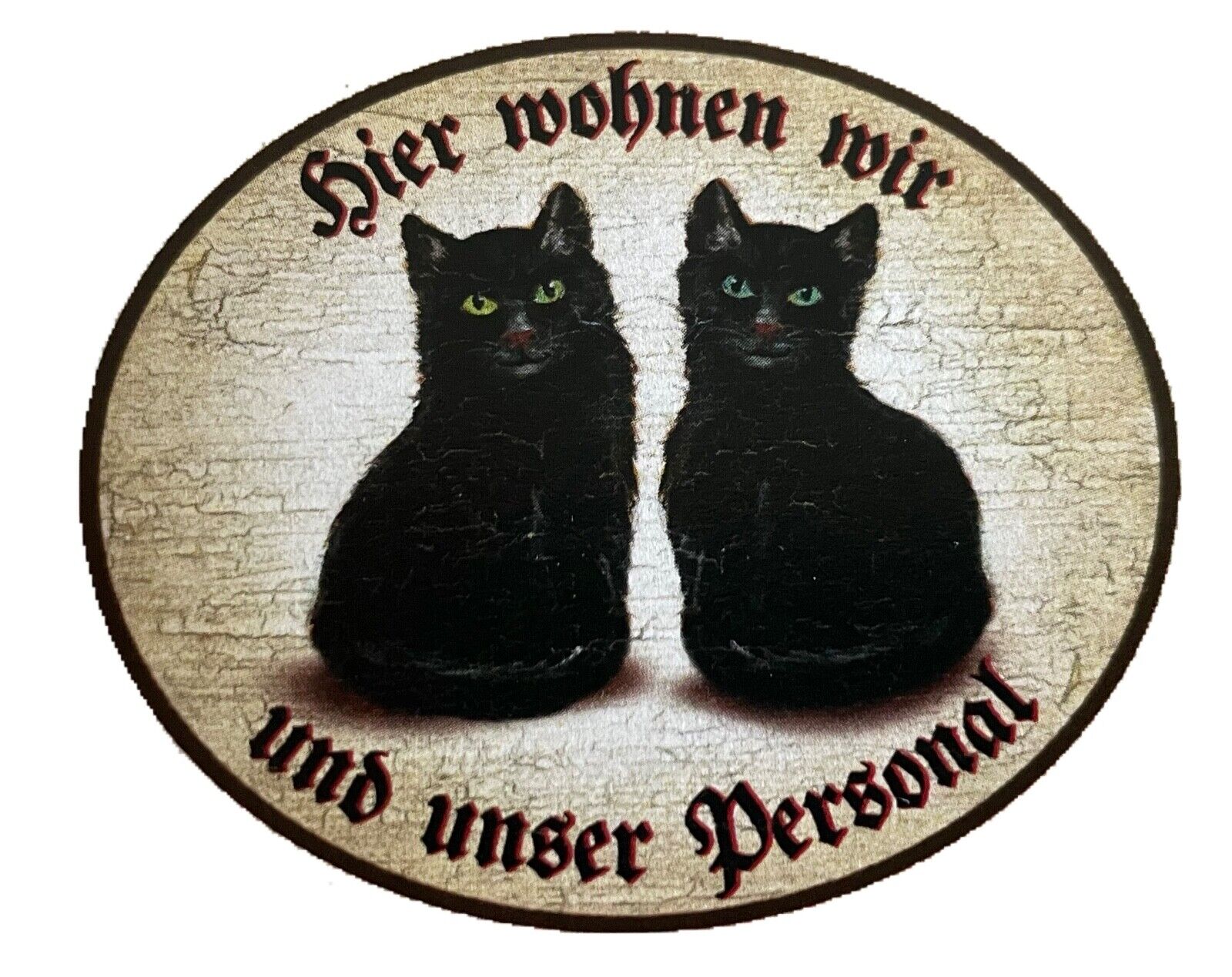 KuK Nostalgie Holzschild "Hier wohnen wir u.u. Personal“ Duo Schwarze Katze