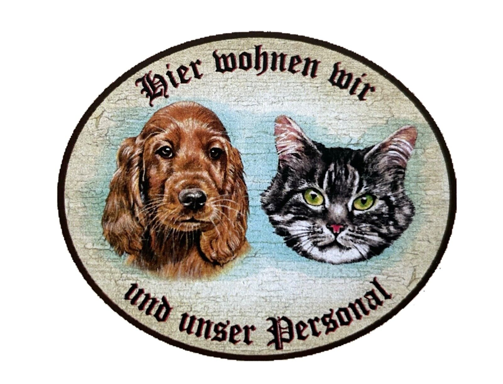 KuK Nostalgie Holzschild "Hier wohnen wir u.u. Personal“ Katze Hund Duo