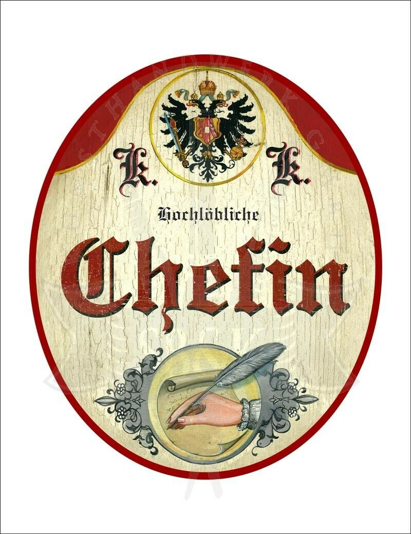 KuK Nostalgie Holzschild - Hochlöbliche Chefin - Hand Feder Papier TH