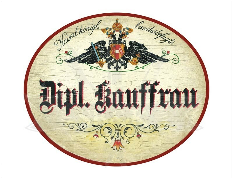 KuK Nostalgie Holzschild - Landesbefugte Dipl. Kauffrau - Ornament TH