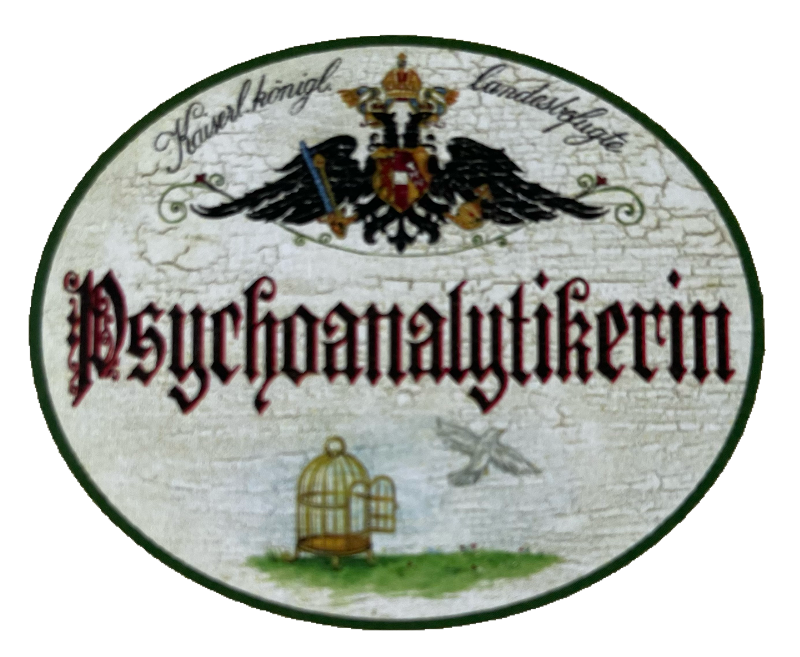KuK Nostalgie Holzschild Landesbefugte Psychoanalytikerin Psychologin Schild