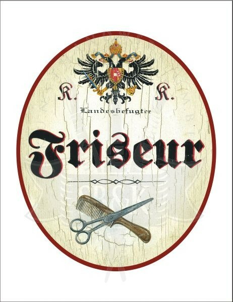 KuK Nostalgie Holzschild - Landesbefugter Friseur - Schere Kamm TH