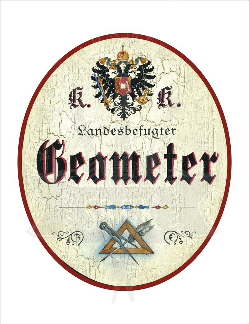 KuK Nostalgie Holzschild - Landesbefugter Geometer - Zirkel Feder TH
