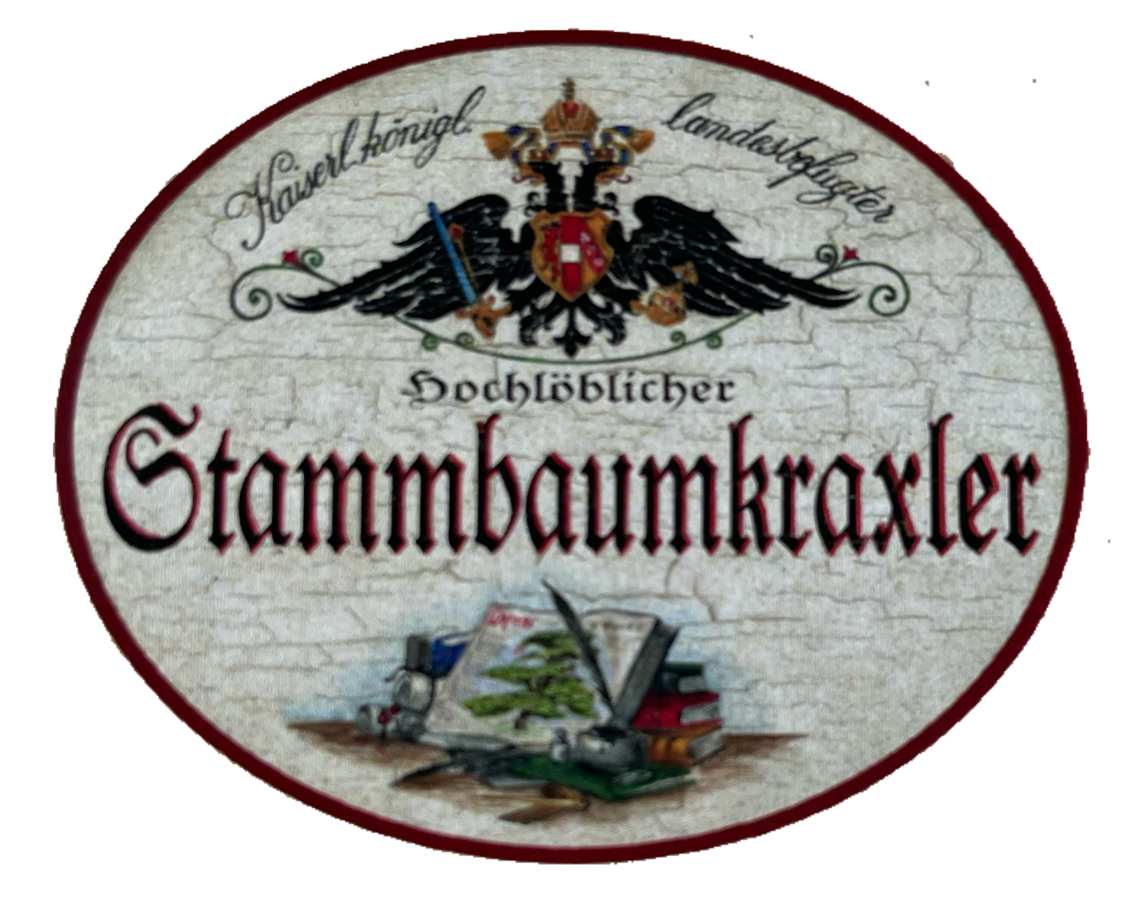 Unter dem stolzen K&K Doppeladler der Monarchie beeindruckt ein Titel wie Hochlöbliche/r, Landesbefugte/r oder kaiserlich privilegierte/r kombiniert mit Berufen, Hobbys, Sport oder anderen Passionen, und einem dazu passendem Symbol oder Bildmotiv. Auf Wunsch mit Namen, Jahreszahlen, etc. personalisiert, sind diese Schilder ideale Geschenke für die zahlreiche Anlässe: die bestandene Gesellen- oder Meisterprüfung, Diplom, Berufsjubiläen oder zum Eintritt in den wohlverdienten Ruhestand.