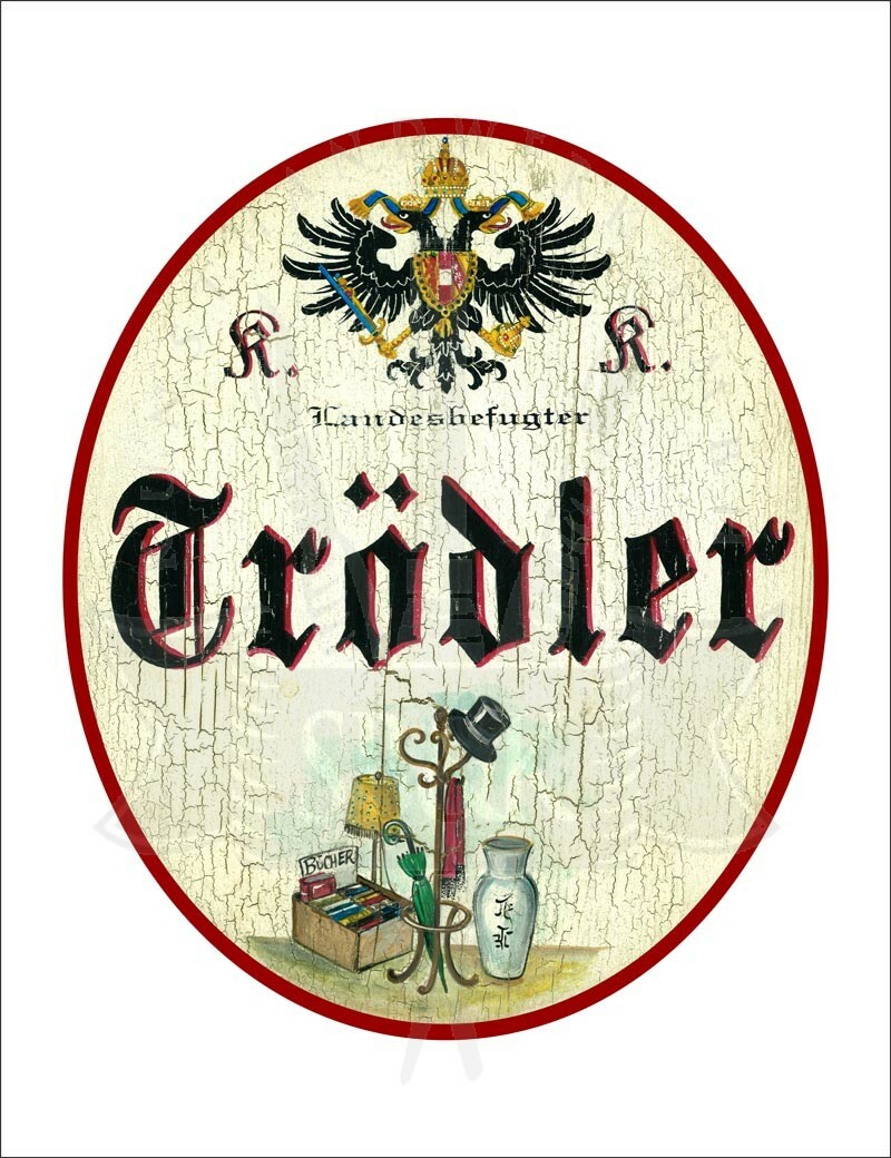 KuK Nostalgie Holzschild - Landesbefugter Trödler - Antiquitäten TH