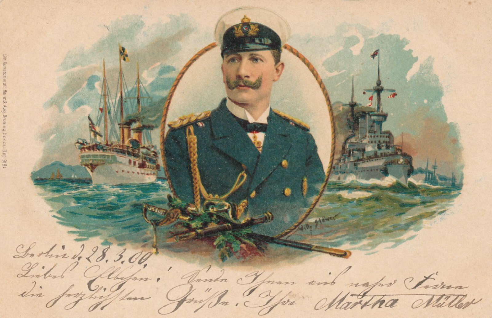 Kunst - Karte Willi Stöwer mit Schlachtschiffen Millitaria Ansichtskarte (8645)
