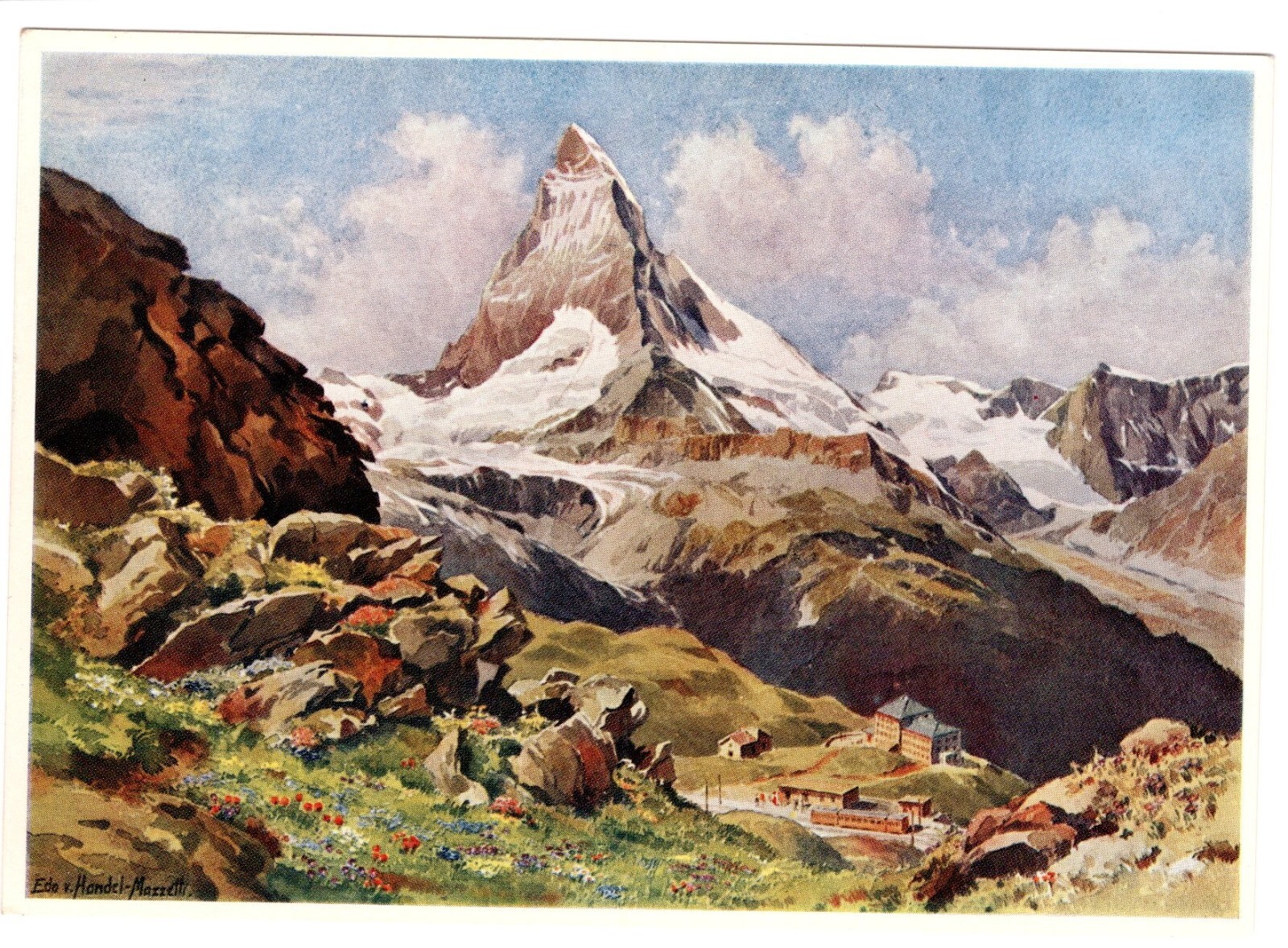 Künstler-AK, Handel-Mazzetti, Zermatt, Hotel Riffelberg mit Matterhorn (S5036)