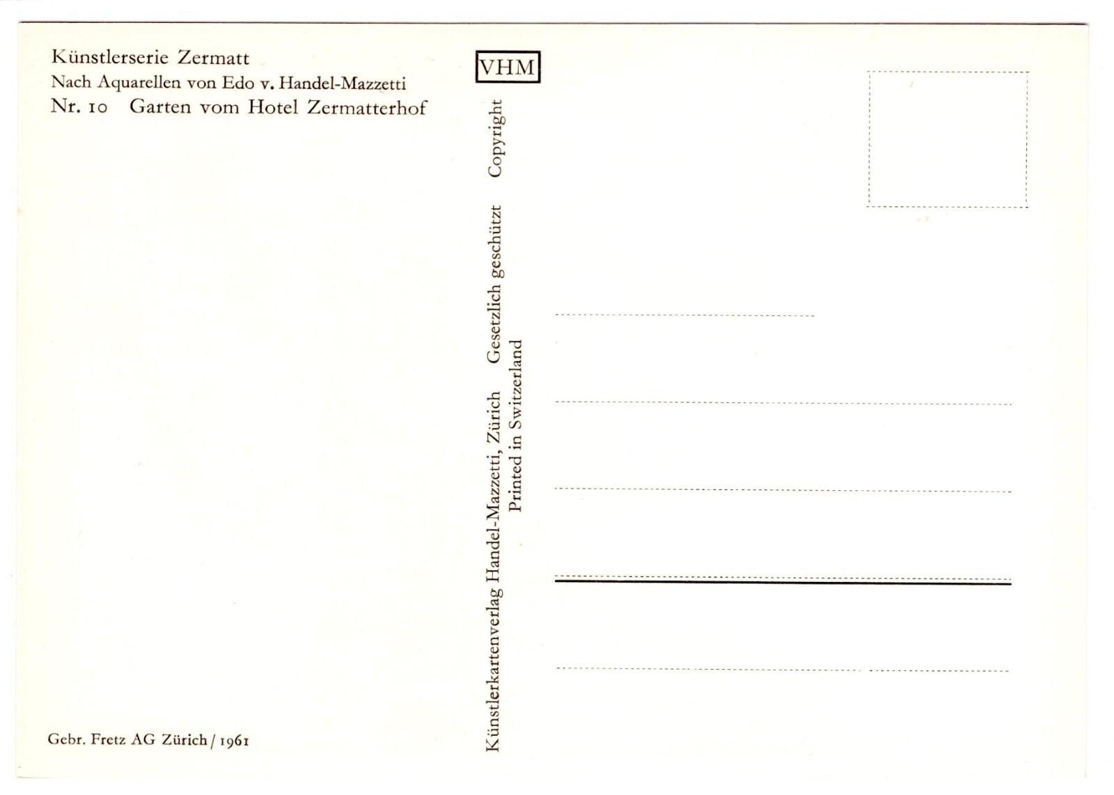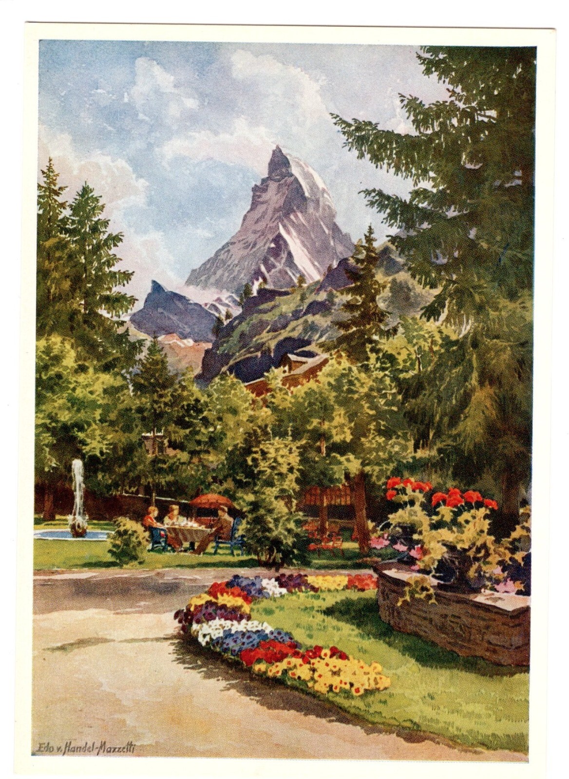 Künstler-AK, Handel-Mazzetti, Zermatt, Nr. 10 Garten vom Hotel Zermatter (S5037)