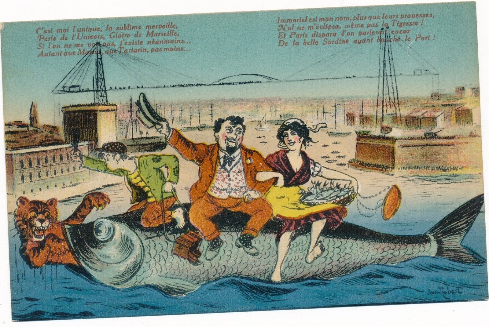 Künstler Karte aus Marseille Frankreich mit Riesen Fisch Ansichtskarte (8571)