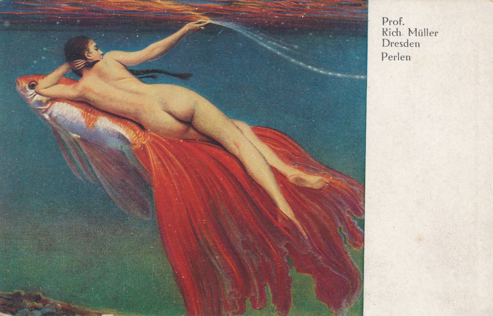 Künstlerische Sagen und Legenden Karte Perlen Frau schwimmt mit Goldfisch (6502)