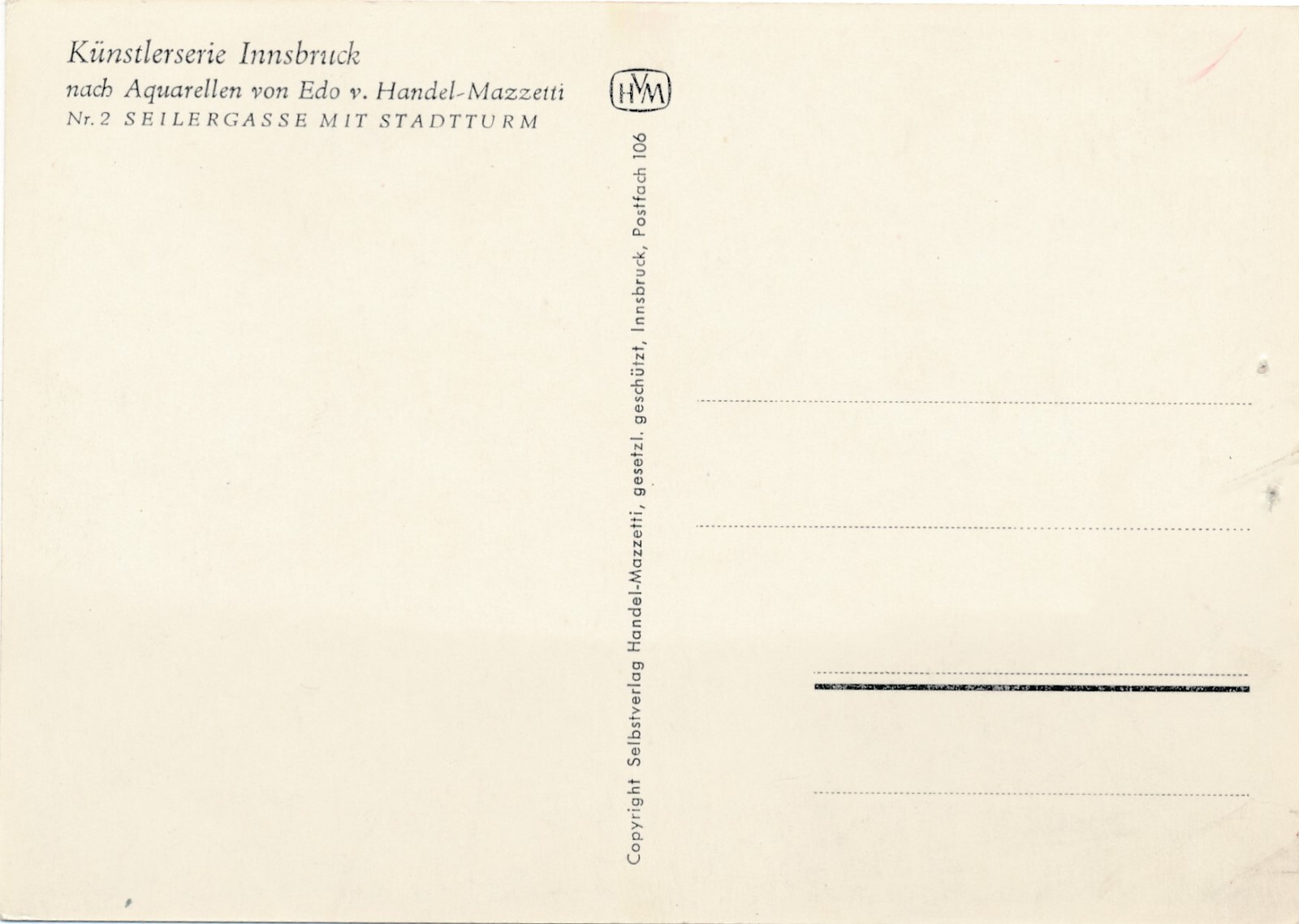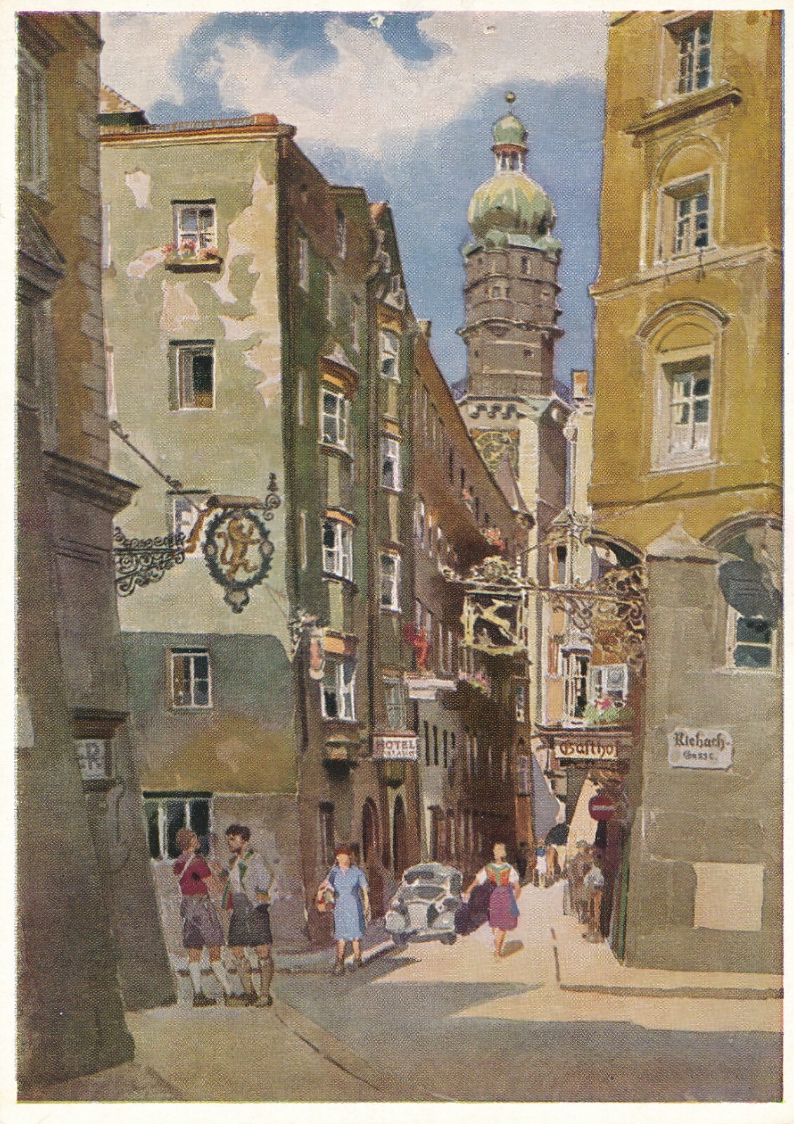 Künstlerserie Innsbruck, Nr. 2, Seilergasse mit Stadtturm, Tirol (S1560)