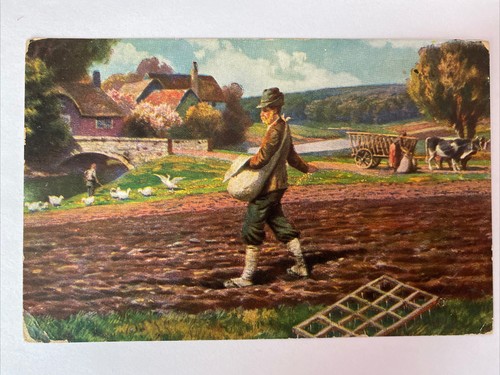 Landschaftsbild mit Bauern, Gänse, Landleben 410026 AH