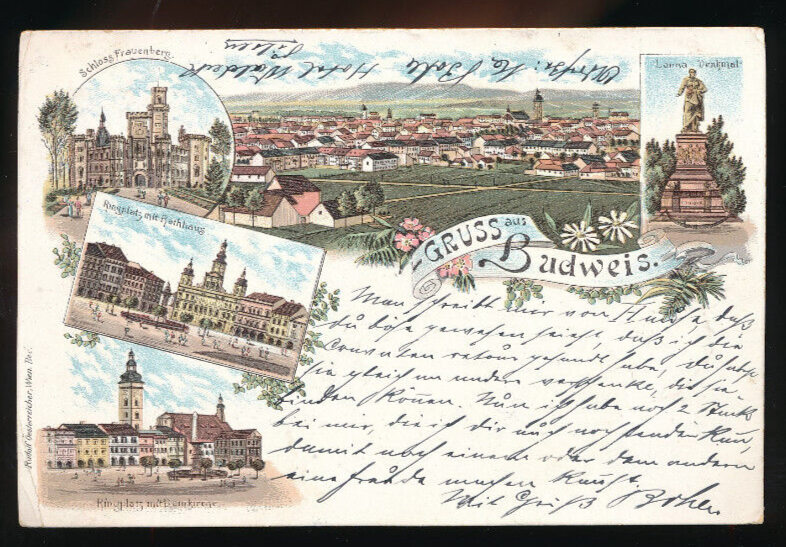 Litho - Karte aus Budweis Tschechoslowakei (3148)