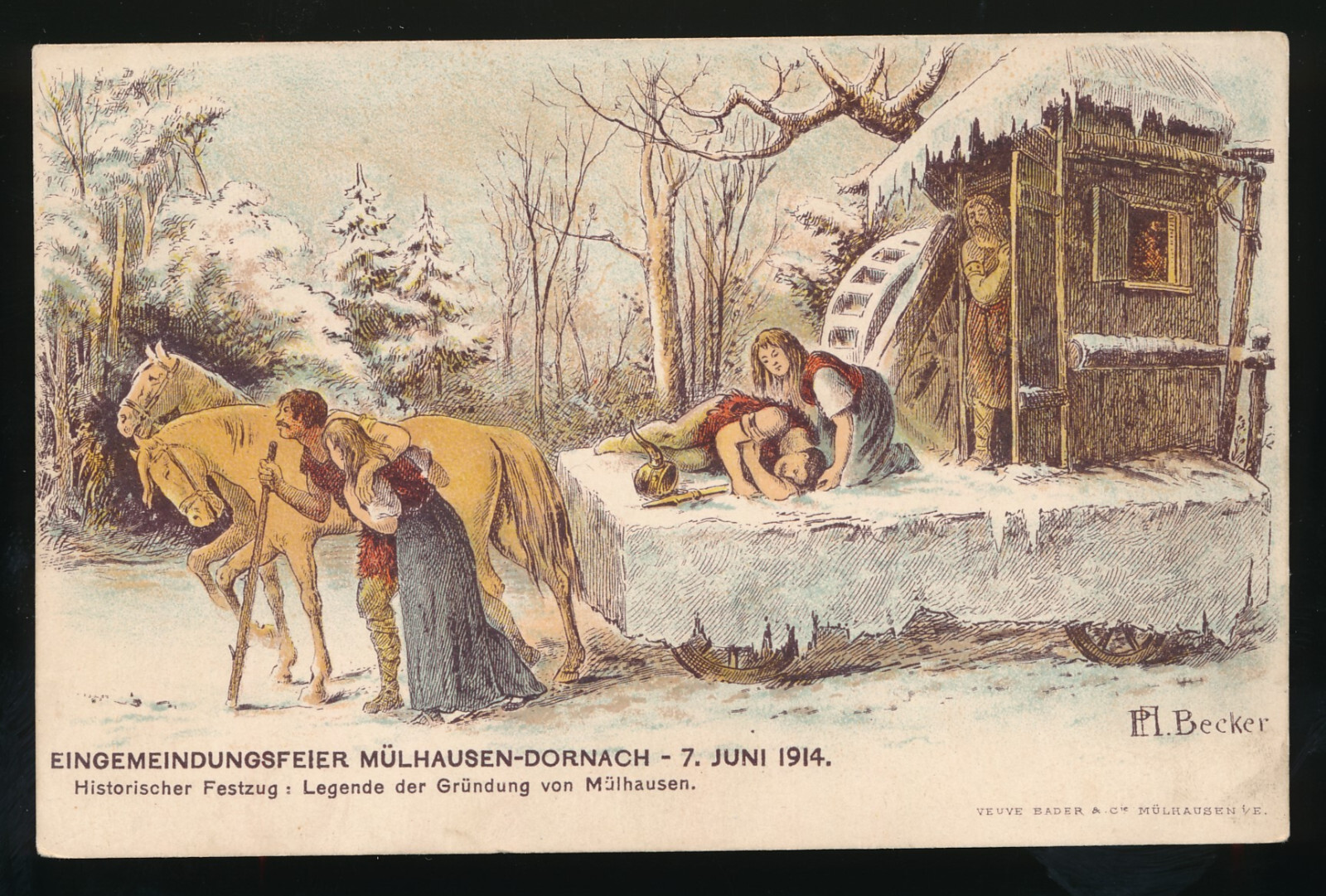Litho-Karte aus Mühlhausen-Dornach Eingemeindungsfeier 7 juni 1914 (523)