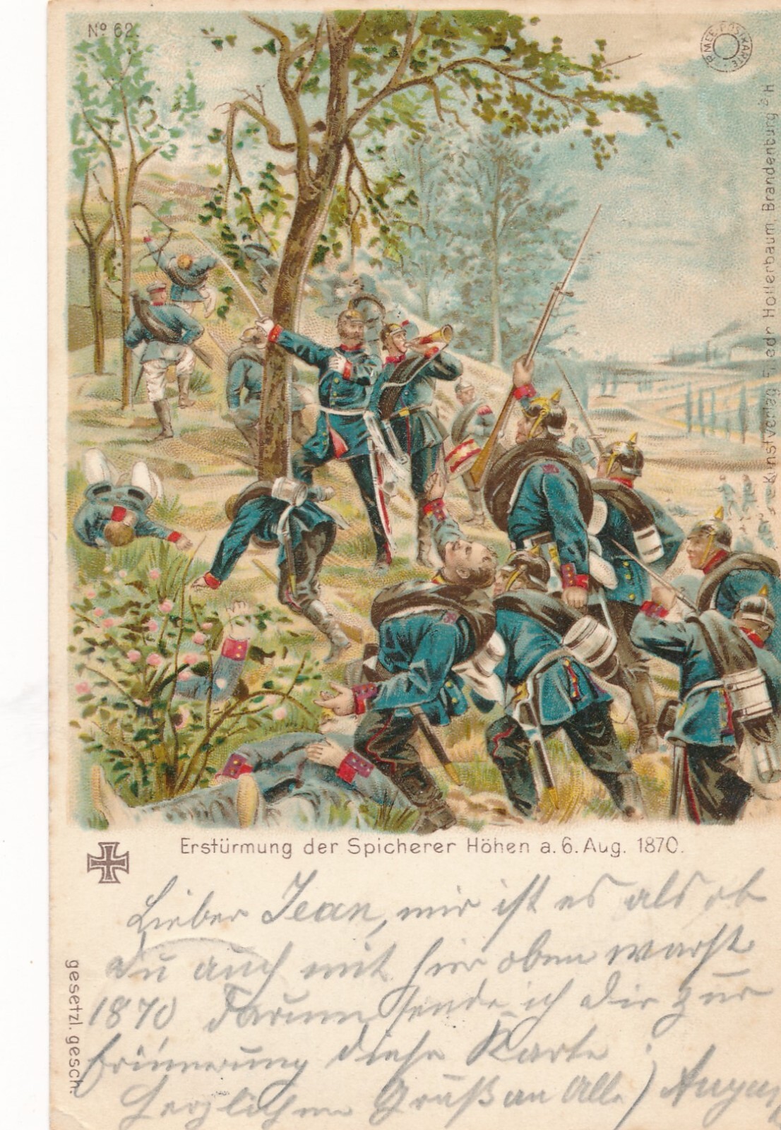 Litho - Karte erstürmung der Speicherer höhe mit Soldaten (9124)