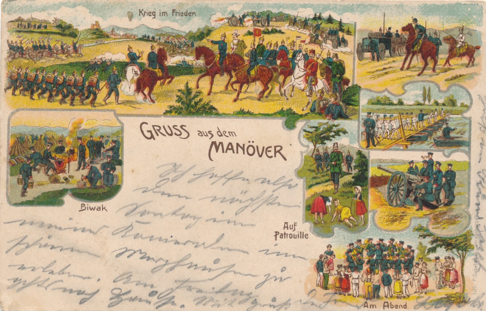 Litho - Karte gruss aus dem Manöver auf Patrouille (9125)