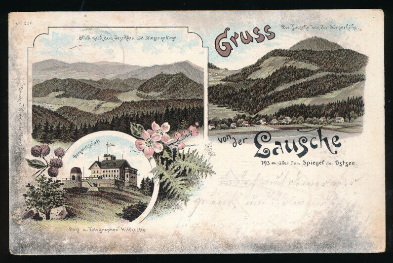 Litho-Karte gruss von der Lausche Sachsen (1872)