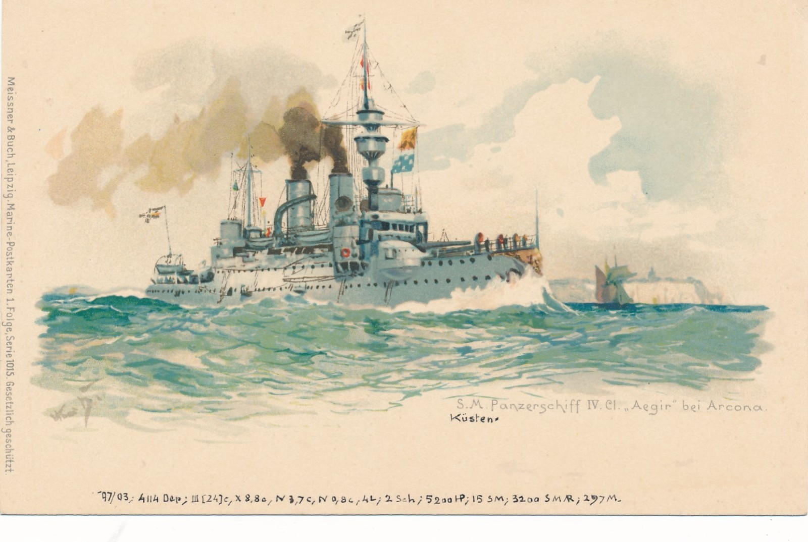 Litho - Karte vom S.M Panzerschiff IV Ci Aegir bei Arcona Ansichtskarte (15786)
