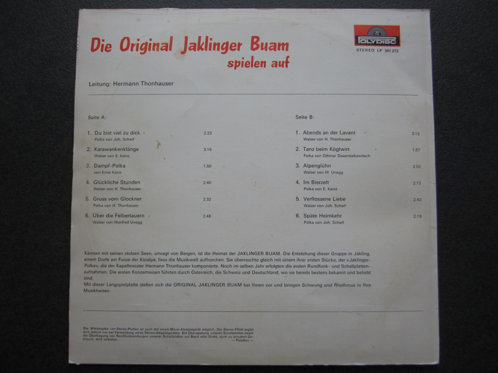 LP / Die Original Jaklinger-Buam Spielen Auf / Swiss Press /
