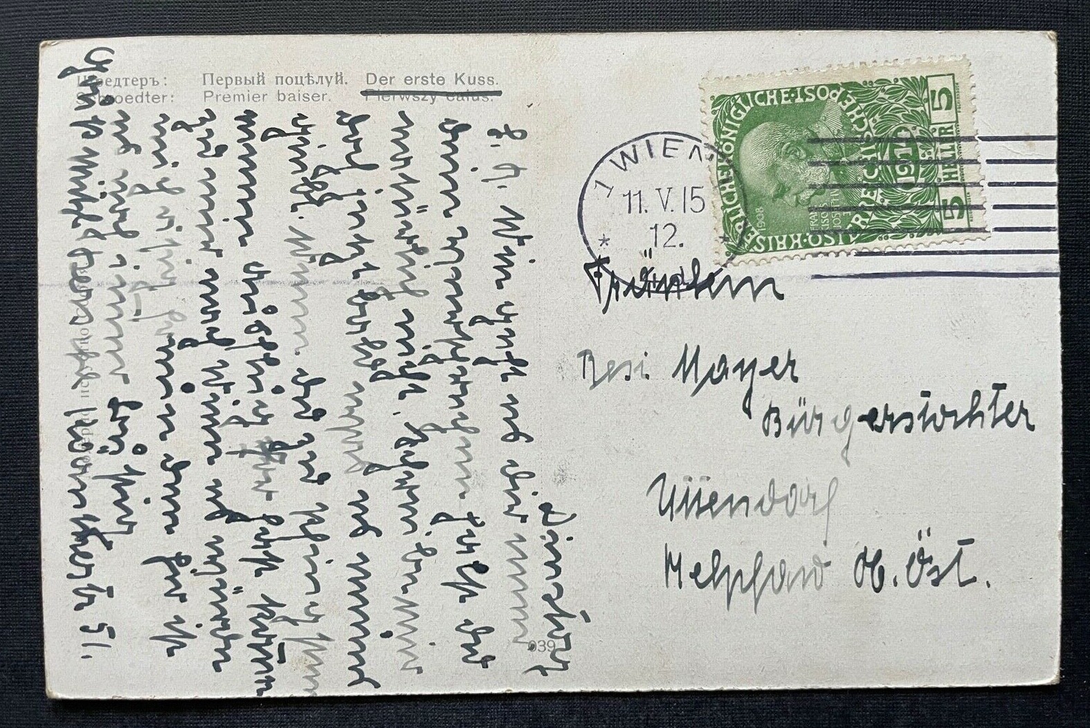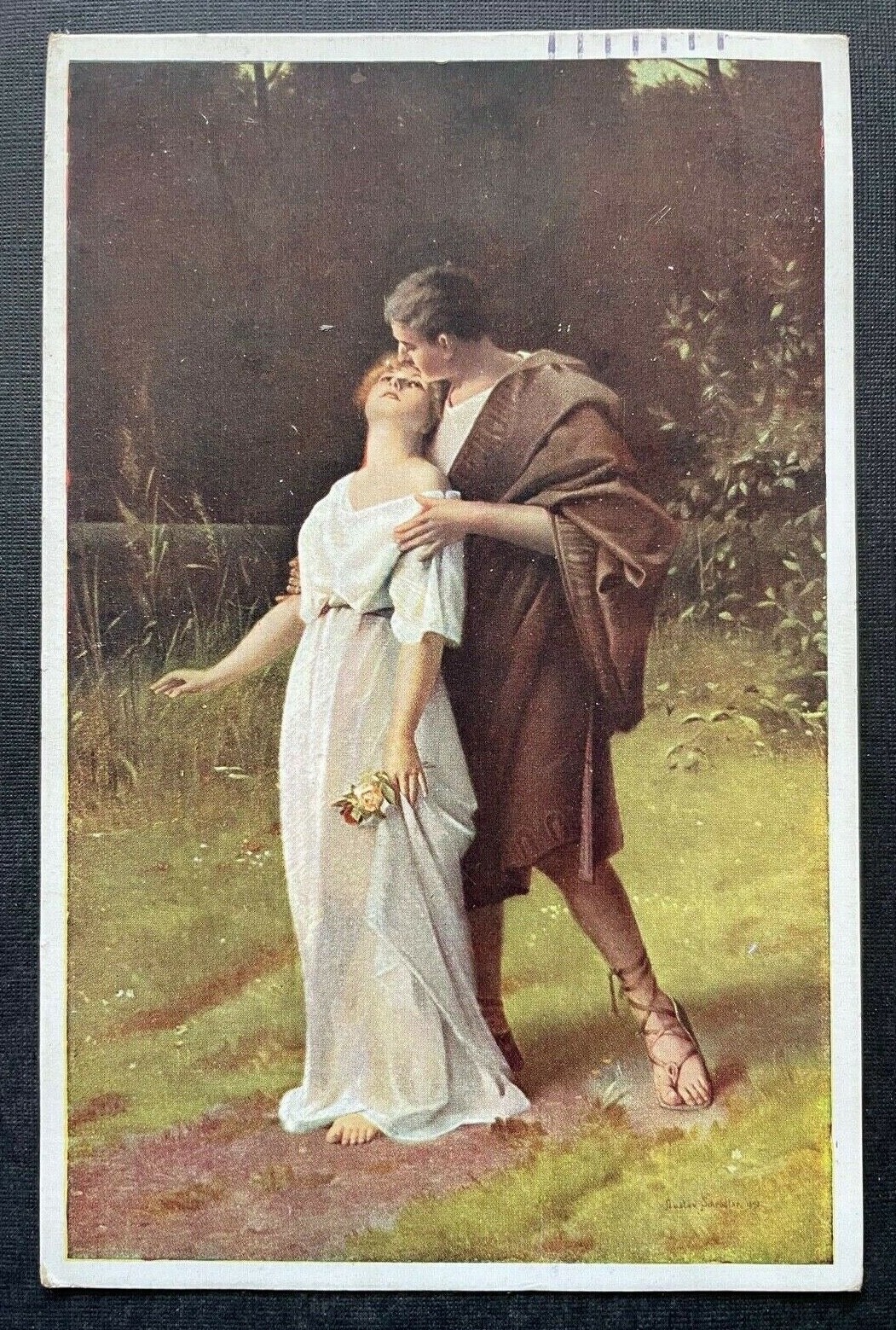 Malerei Der erste Kuss Schroedter Mann Frau Paar Kleid Umhang Natur 400390 TH