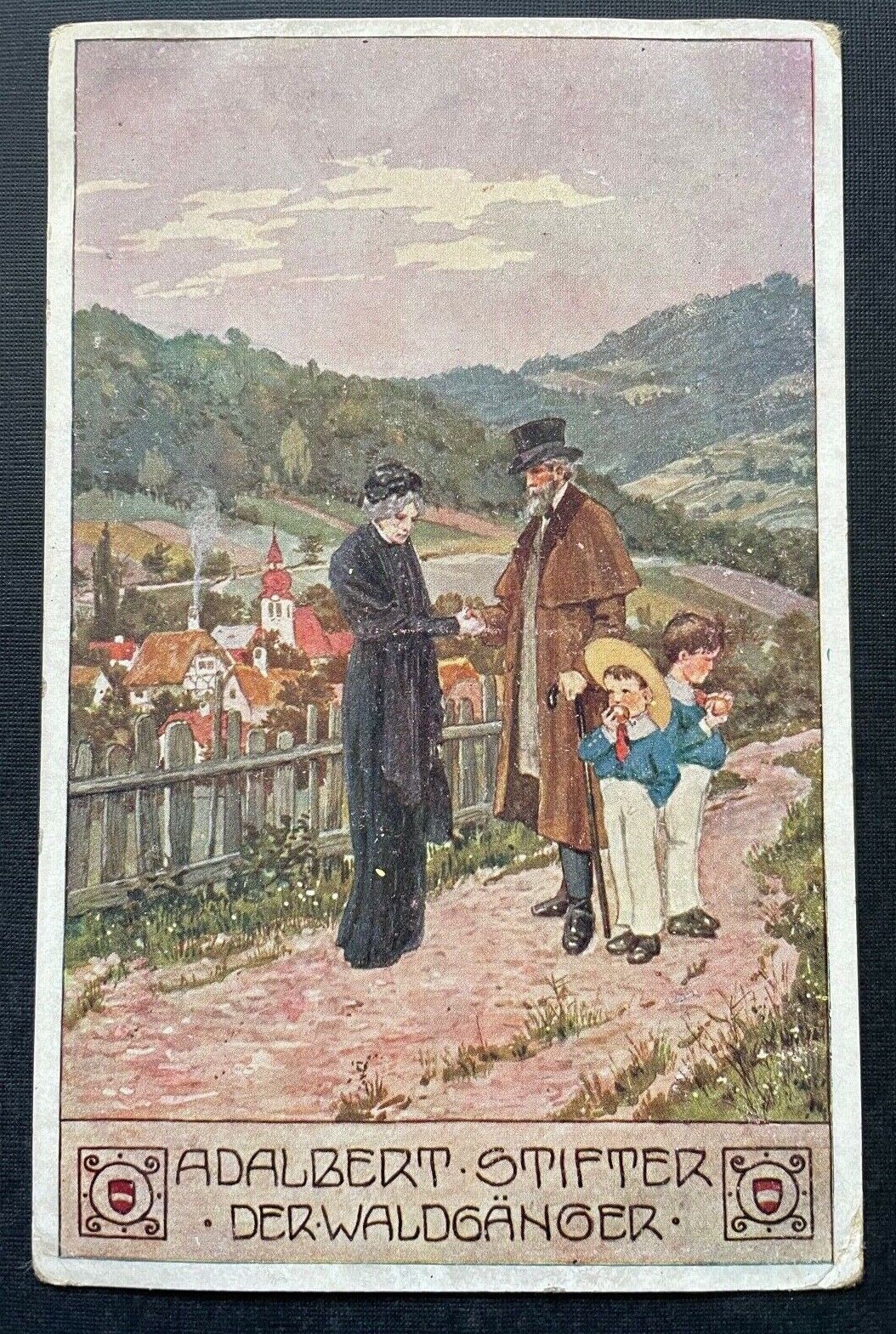 Malerei Der Waldgänger A.Stifter Mann Frau Kinder Aussicht Ortschaft 400348 TH