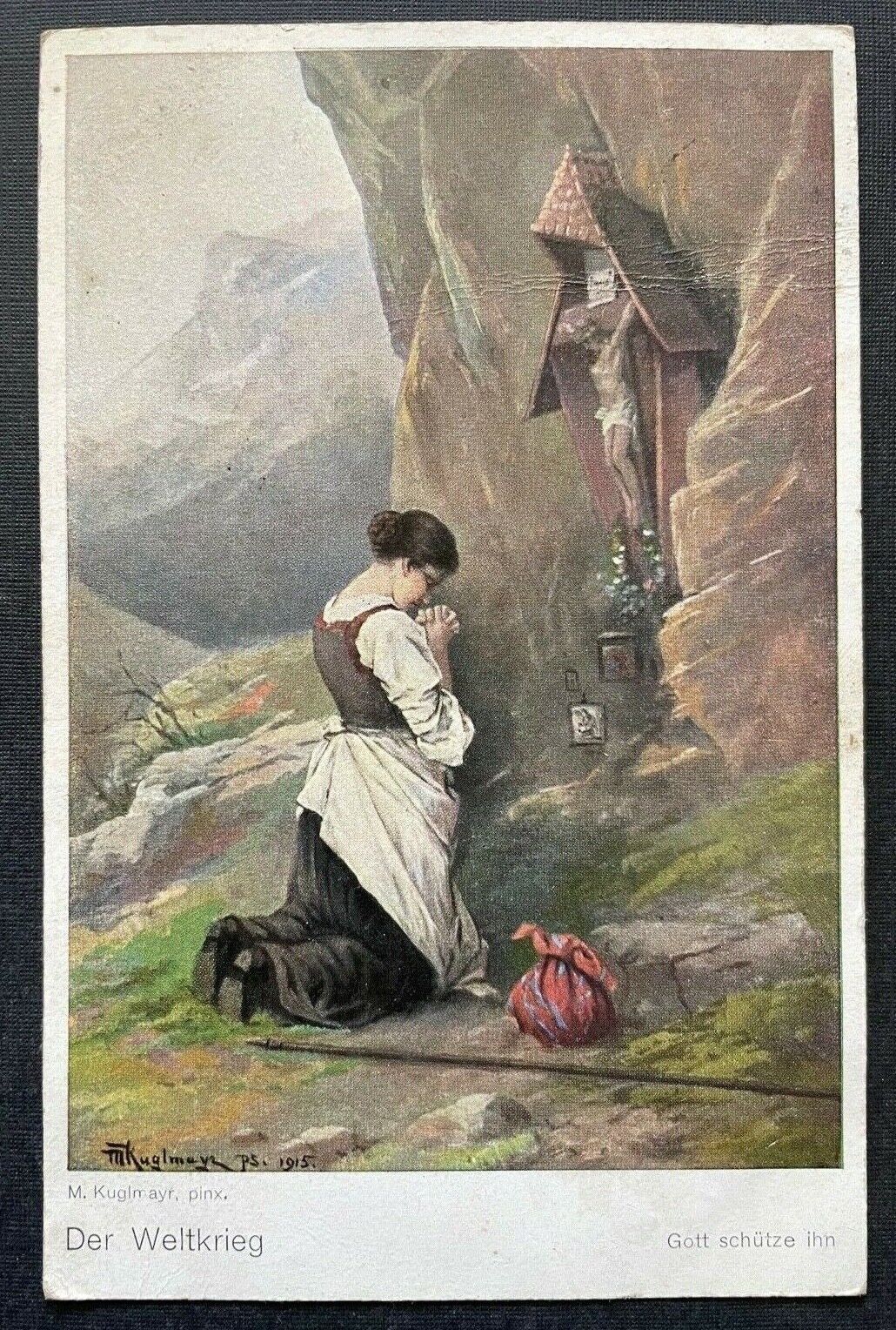 Malerei Gott schütze ihn Weltkrieg Kuglmayr Frau Kleid Bildstock Kreuz 400394 TH