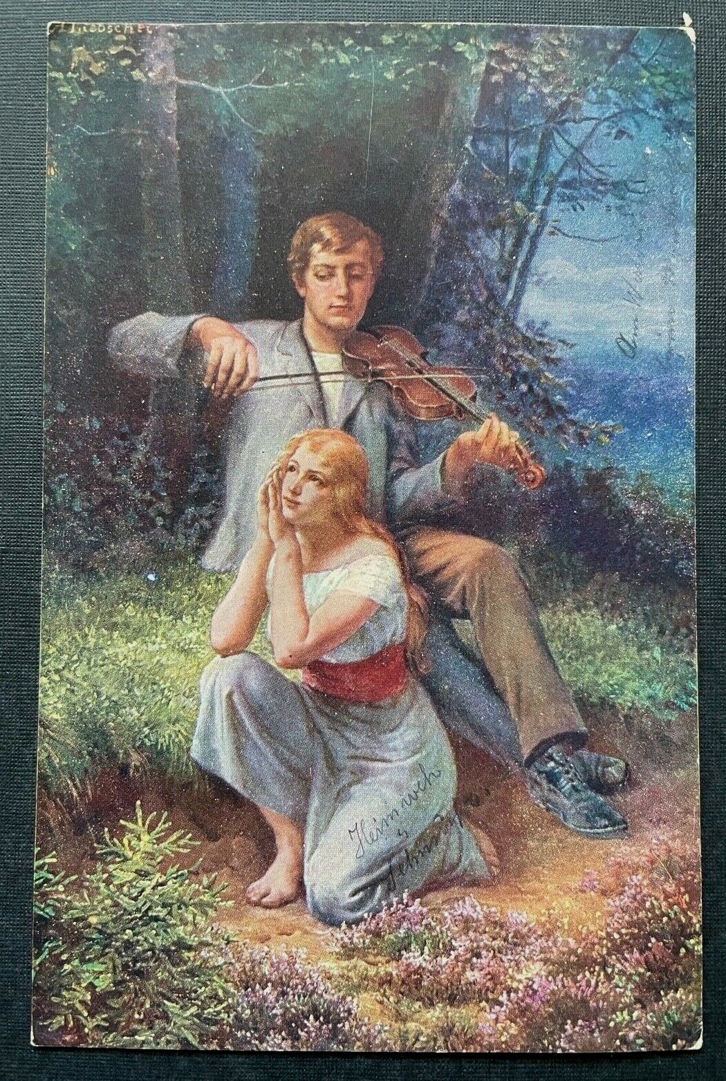 Malerei Heimweh Ad.Liebscher Frau Mann Musiker Geige Kleid Anzug Natur 400337 TH