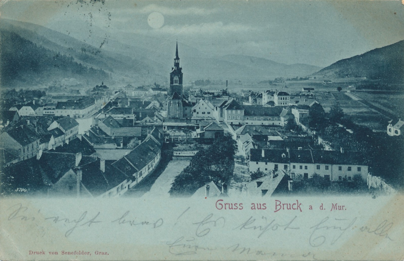 Mondschein - Karte aus Bruck an der Mur Steiermark Ansichtskarte (12591)