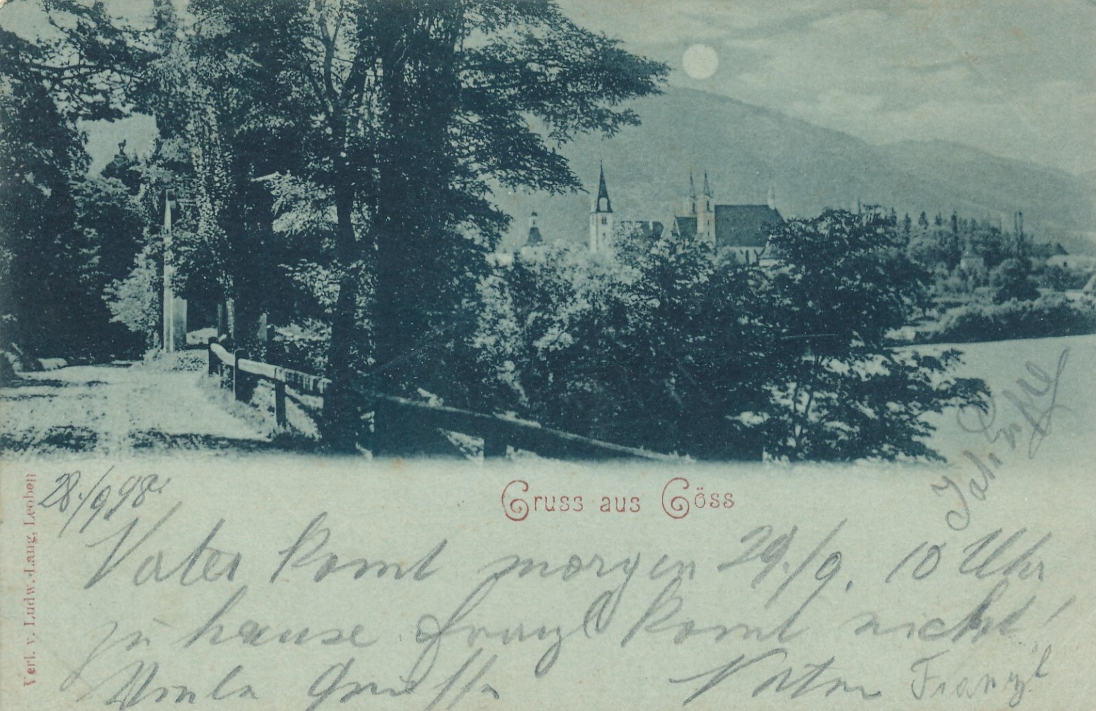 Mondschein - Karte gruss aus Göss Steiermark Ansichtskarte (14226)