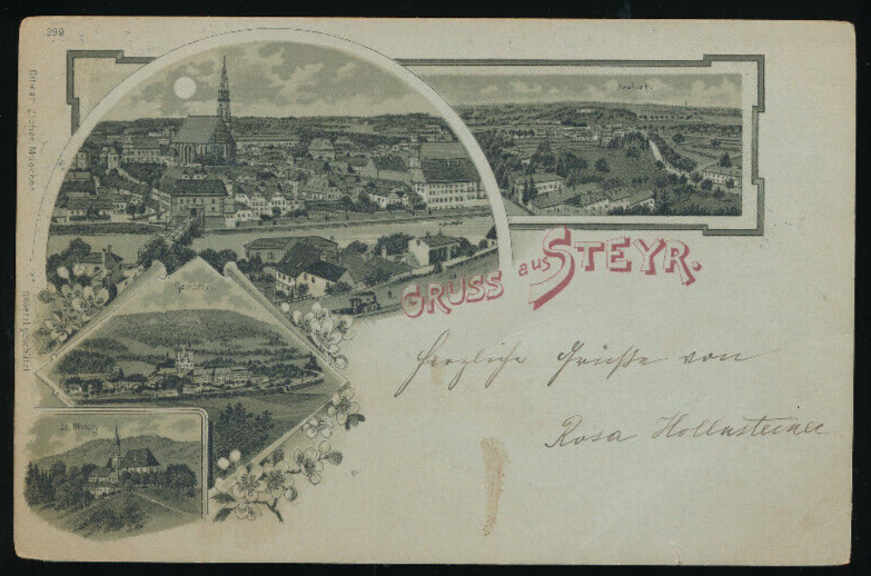 Mondschein - Litho Karte gruss aus Steyr Oberösterreich (2658)