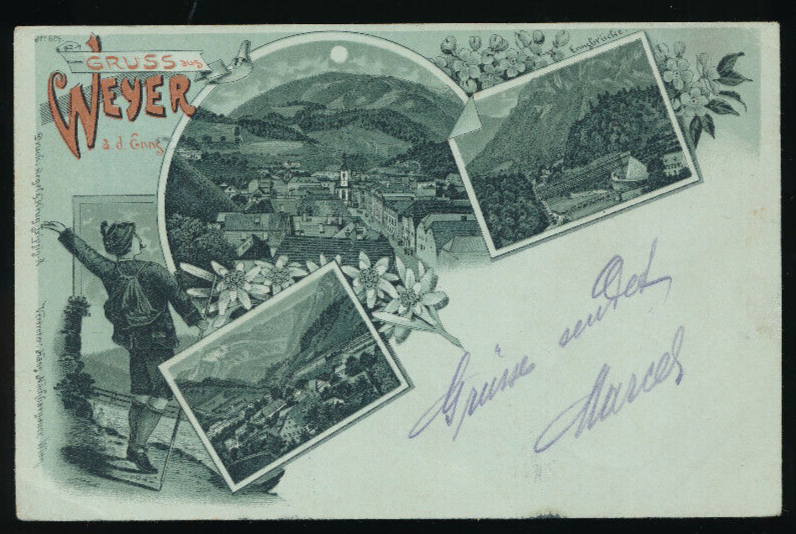 Mondschein - Litho Karte gruss aus Weyer an der Enns Oberösterreich (2687)