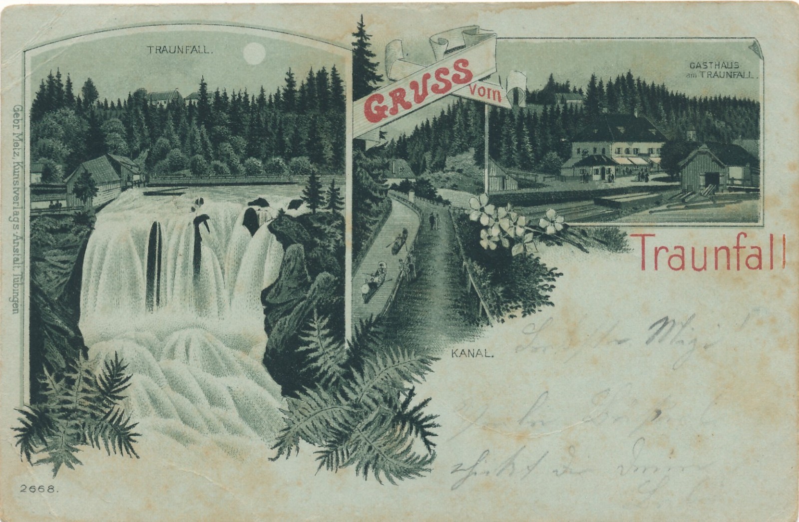 Mondschein - Litho - Karte gruss vom Traunfall OÖ Ansichtskarte (15263)