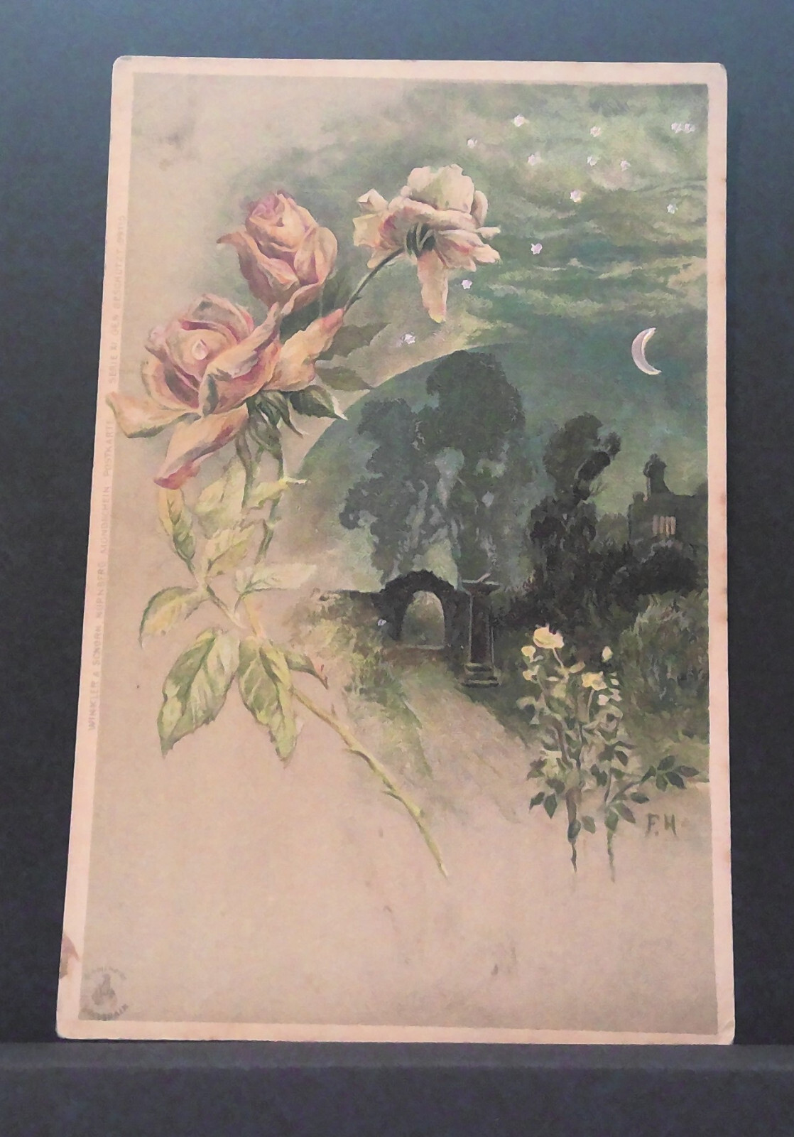 Mondscheinpostkarte Mond Sterne Rosen JW 650424 C