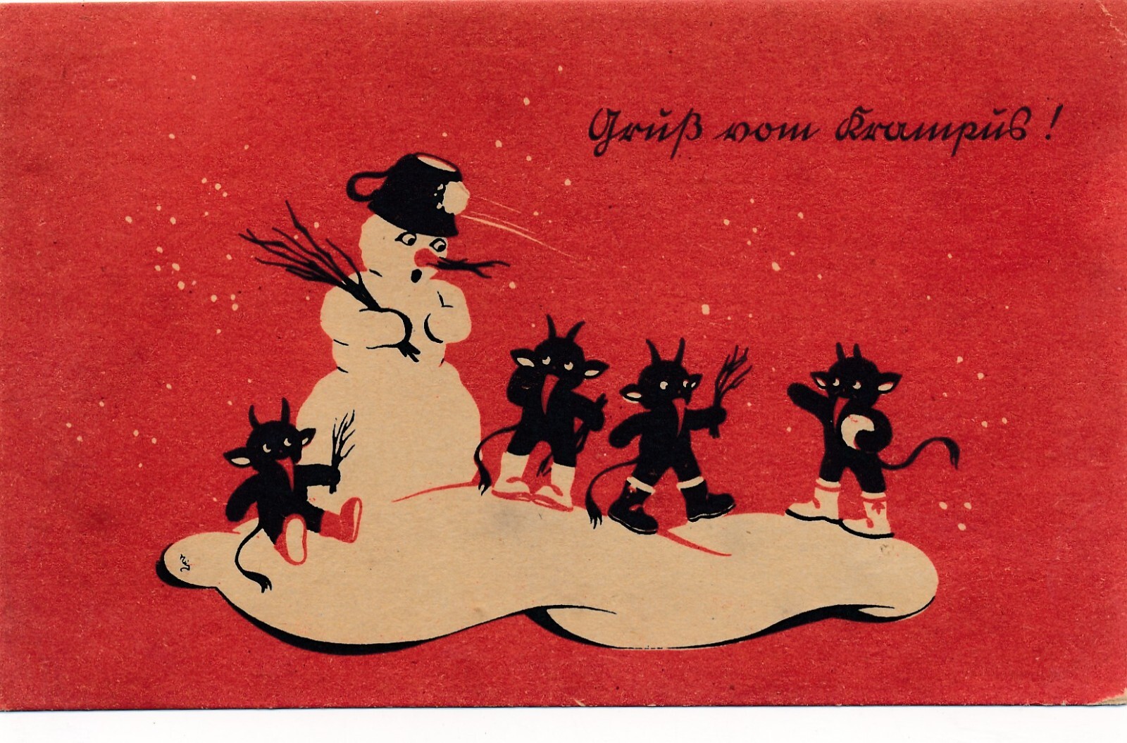 Motiv - Karte gruß vom Krampus drei Krampuse mit Schneemann (7224)