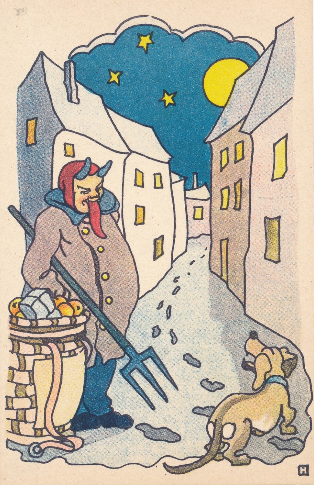 Motiv - Karte Krampus mit Dreizack und Hund (7219)